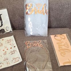 New Bride wedding shower accessories includes tattoos, crown headband, veil, bride sash and Just Married banner$20Paramount, CA
