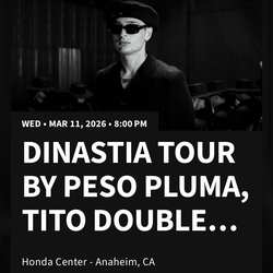 Peso Pluma Dinastia Tour March 11$350Irwindale, CA