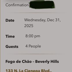 Dinner reservation for 4 people at 8pm$100Los Angeles, CA