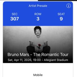 BRUNO MARS LAS VEGAS CONCERT TICKET$350Compton, CA