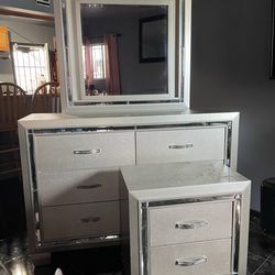 Silver vanity dresser and nightstand$130Los Angeles, CA