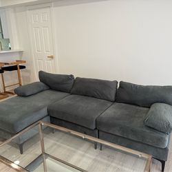 Grey Blue Velvet L shaped sofa$550Burbank, CA