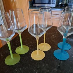 Set of 6 wine glasses w/ blue, green, yellow stems$10Agua Dulce, CA