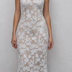 LACE SLEEVELESS CORSET BACK SLIT MAXI DRESS$105Los Angeles, CA