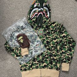 BAPE Double Hood Green Camo Zip Up Hoodie$80Long Beach, California