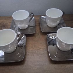 Porcelain Tea Cups w/Matching Silver Colored Saucers Set Of 4 (8 Pieces Total)$16Los Angeles, CA