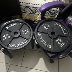 Full Set of Olympic Plates with Brand NEW 6 ft Steel Barbell with Cooper Bearings [ Plates from 45s to 2.5s] Brute: 287 #$365Los Angeles, CA