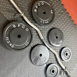 Standard Curl Bar With Pairs Of 25s, 10s And 5s. (Total: 94 lbs) $125Los Angeles, CA