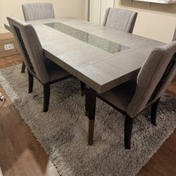 Modern Dining Table with 4 Chairs and Glass Center in Excellent Condition$550Burbank, CA