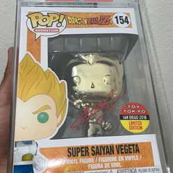 Funko POP! Animation Dragon Ball Z Super Saiyan Vegeta Gold Chrome #154 PSA Certified Christopher Santa Autograph$400Glendale, CA