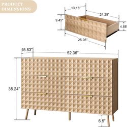 Farmhouse Style 6-Drawer Bedroom Dresser, 54-Inch Wide Wooden Chest of Drawers, Vintage Design TV Stand, Rustic Storage Dresser Organizer AS IS$120Los Angeles, CA