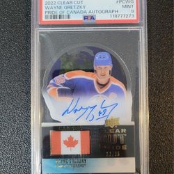 🐐Pop2 PSA 9 #/25 on card Auto Wayne Gretzky 2022 UD Clear Cut Pride of Canada $900Long Beach, CA