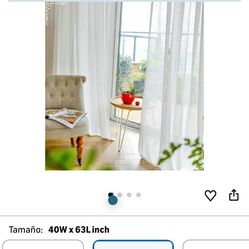 Cortinas finas de gasa traslúcidas, 2 paneles, cortina para ventana de 63 pulgadas de largo, cortinas blancas de color sólido de 40 pulgadas de ancho$24South Gate, CA