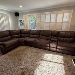Brown leather L shaped couch set.$145Artesia, CA