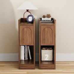 Nightstands Set of 2, Slim Bedside Tables with Raised Edge Top, Arched Drawer & Open Shelf, Modern Wooden Small End Tables for Bedroom Small Spaces (2$65Arcadia, CA