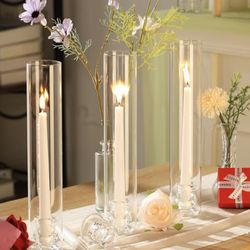 New Glass Cylinder Vases Pack of 12, Clear Ribbed Bud Vases for Centerpieces Weeding Decoration, 6 inch Tall Clear Flower Vases in Bulk, Hurricane Can$35Carson, CA