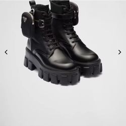 𝐏𝐑𝐀𝐃𝐀 Women's Monolith Leather And Re-Nylon Combat Boots With Pouch Size 6,7$480Los Angeles, CA