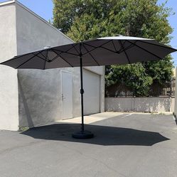 $130 (New in box) Large 15ft double sided outdoor umbrella w/ 65 lbs plastic weight base (red/gray)$130El Monte, CA