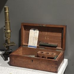 Antique Victorian Brass Microscope – Complete Set w/ Case, Key & Doctor History $1,800La Mirada, CA