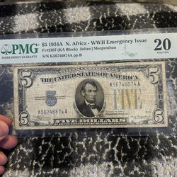 1934 N. Africa $5 Bill$150Long Beach, CA