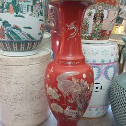Vintage Vase Mother of Pearl Inlay Cloisonné Enamel Large Red $120Los Angeles, CA