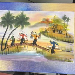 Hand-Painted Village Landscape Canvas $85Santa Ana, CA