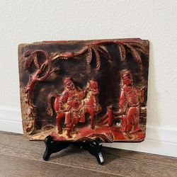 Antique Chinese Hand Carved Red Gold-Gilt Wood Panel High Relief 7.5/10 Inches $165Long Beach, CA