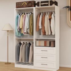 Closet System with 2 Sets, 4FT Closet Organizer Systems with 3 Wooden Drawers & 5 Hanging Rods, Walk in Closet Standalone Corner Closet System Modular$290Chino Hills, CA