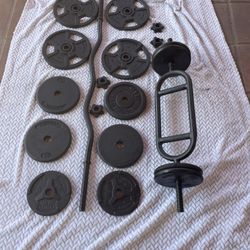 Olympic Weight Plate Set + Barbell & Curl Bar $350 OBO$350Sierra Madre, California
