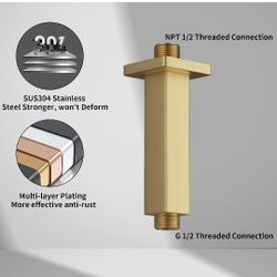 Brushed Gold Shower Arm with Flange 4 inch Square Shower Head Extension Arm for Fixed Showerheads and Handheld Showerheads, KATAIS$14Modesto, CA