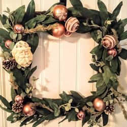 VINTAGE VICTORIAN SANTA WITH PINK ORNAMENTS WREATH $10Byron, CA