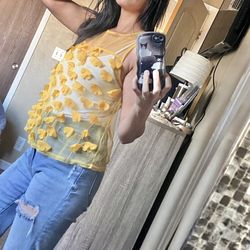 Made in USA Lemon Print Off Shoulder Blouse Women’s XL Navy Blue $19Modesto, CA