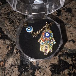 Gold color Hamsa hand eye charm necklace colorful bling$5Manteca, CA