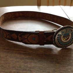 Zuni Turquoise Coral Onyx Belt Bucket Leather Belt$50Turlock, CA