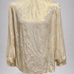 Gold Metallic High Neck Blouse Long Sleeve Smocked Cuffs Size Large $22Modesto, CA