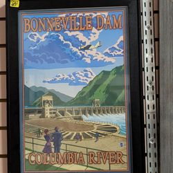 Bonneville Dam Columbia River Framed Art Print Wall Decor Travel Poster Vintage