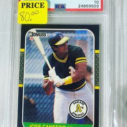 Jose Canseco 1987 Donruss PSA Gem Mint 10$80Modesto, CA