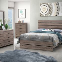 4 Pc Queen Bedroom Set Queen Bedframe Dresser Mirror And Nightstand $899Stockton, CA