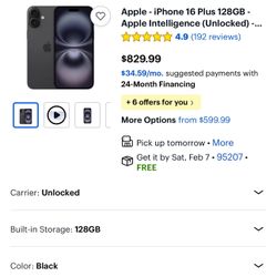 iPhone 16 Plus MATT BLACK 128gig$620Stockton, CA