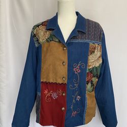 Patchwork Jacket Women Cottagecore Boho Floral Embroidered Denim Mixed Size L$22Stockton, CA