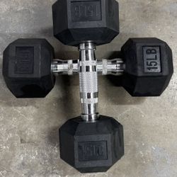 Pair Of 15 Pound Rubber Coated HEX Dumbbells $35Stockton, CA