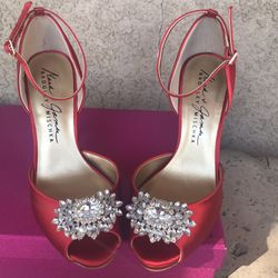 Badgeley Mischka Red Satin jeweled heel$25Stockton, CA