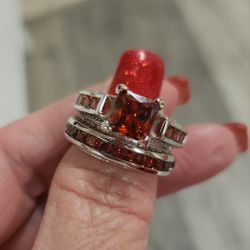 Red Garnet Inspired Princess Cut Wedding Set... S7$30Riverside, CA