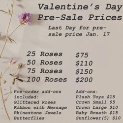 Valentines Day Pre Order Roses$1Grand Terrace, CA