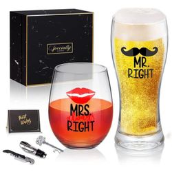 Mr Right and Mrs Always Right Novelty Wine Glass and Beer Glass Combo, Funny Wedding Gifts for Bride Groom, Christmas, Anniversary, Valentines, Engage$15Corona, CA