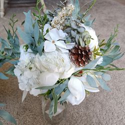 3 Ivory Bridal Bouquets of artificial flowers White, vases not included