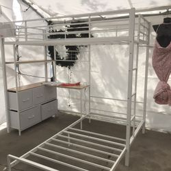 White Bunk Bed Usb And Cabinets $120Highland, CA