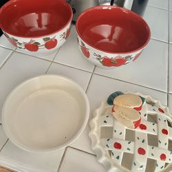 Adorable, ceramic bowls and dish with apples all over them. (Brand New)$15Oak Glen, CA