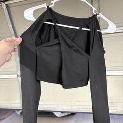 Black Long Sleeve Crop Top Cutout Criss Cross Back$2Perris, CA
