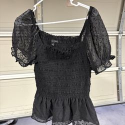 Pa Moa Black Smocked Puff Sleeve Top XL$5Perris, CA